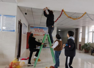 当正月遇上开学,宿管老师们齐心协力,精心设计、布置楼宇门厅,将喜庆的灯笼高挂,用缤纷的气球点缀公寓楼大厅,富有特色的黑板报上书写了来自宿管老师的温馨祝福和暖心提醒,一笔一画皆是情,一点一滴皆是爱,返校的学生看到温馨布置的大厅,纷纷称赞太有爱了!