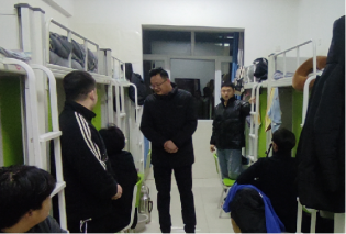 自开学后,党委副书记邓勇同志、学生工作部部长朱军同志、党委学生工作部副部长兼宿管中心主任张江彩多次前往学生公寓楼,关心关爱学生生活,暖心提醒学生尽快调整状态,进入新的学习生活中。