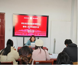 会上,各校区楼长依次上台进行述职,汇报了过去一年中在宿舍管理、学生服务、安全保障等方面的工作成绩和存在的问题及未来工作计划。